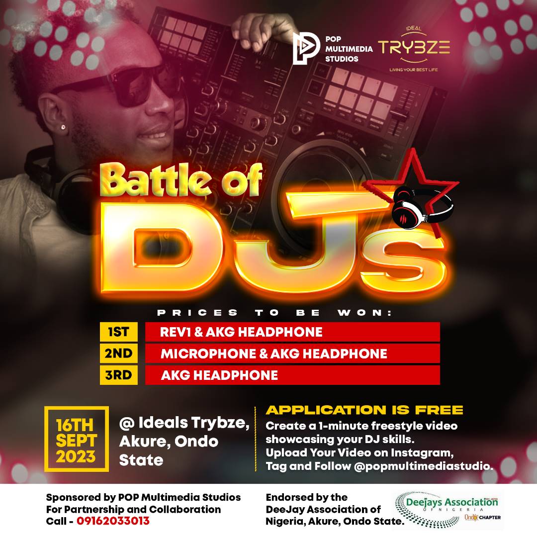 The event tagged BATTLE of DJs is co- sponsored by the Ideal Trybze Lounge where the show is also expected to take the centre stage on the 17th of September,2023.