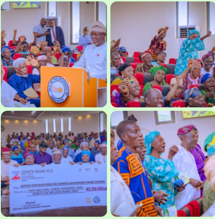 Governor Aiyedatiwa described the payment as a product of deliberate policy, reflecting his government’s sincerity and respect for those who devoted years and expertise to the service of Ondo State.