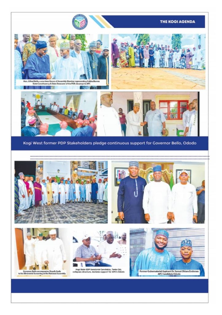 It is on this premise that majority of Kogi indigenes have signed on to only one agenda in the November 11 2023 governorship election, and this is THE KOGI AGENDA, through the candidate of the All Progressives Congress, Alhaji Usman Ododo.